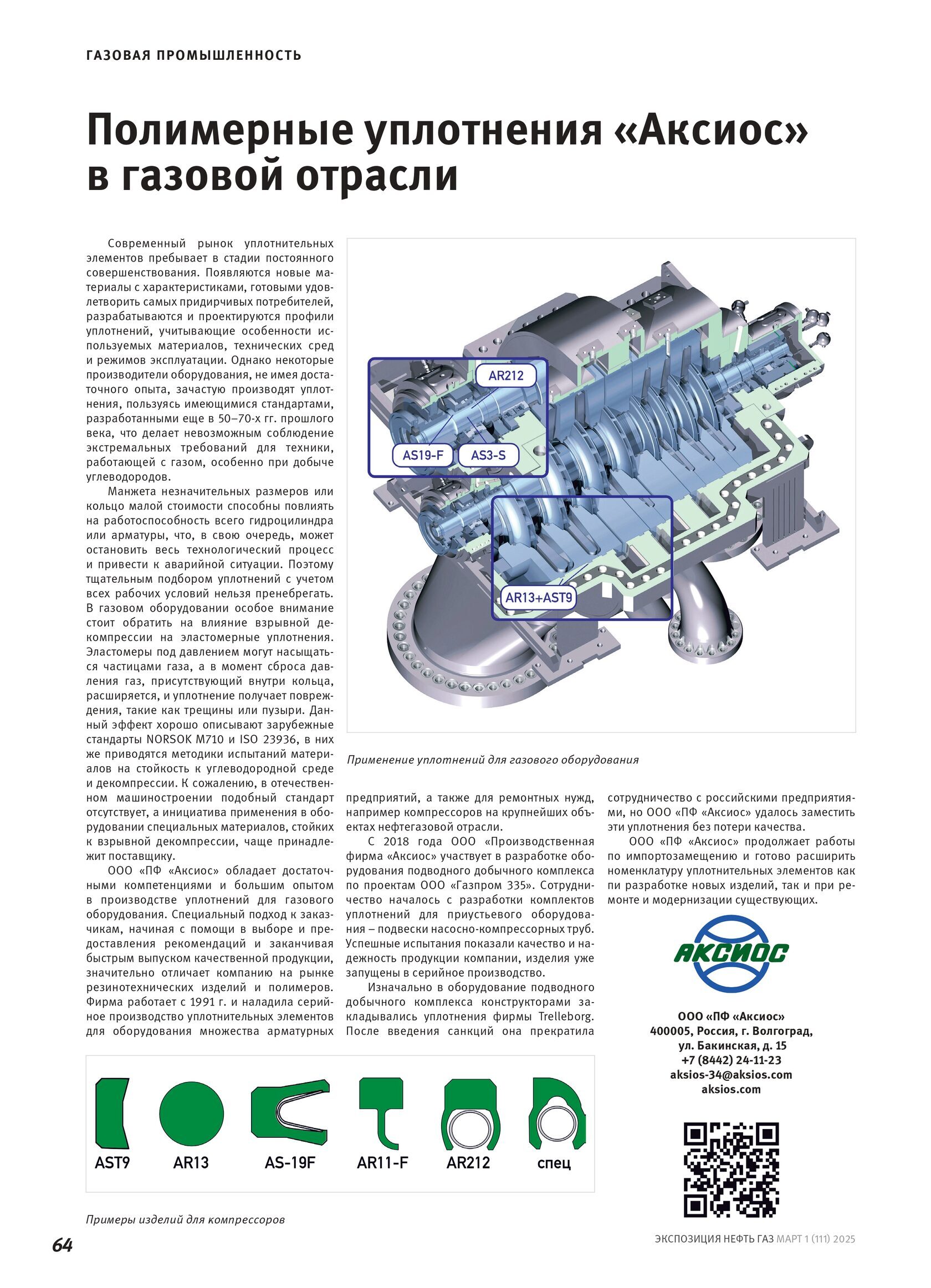 Полимерные уплотнения «Аксиос» в газовой отрасли